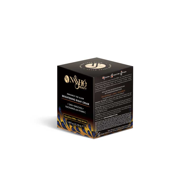 This night cream is enhanced with non-irritating phyto-actives, vitamins (B3 and C) and oils traditionally used in Africa. In skin care and skin healing practices, it is a light fusion that easily absorbs to naturally fight dullness.